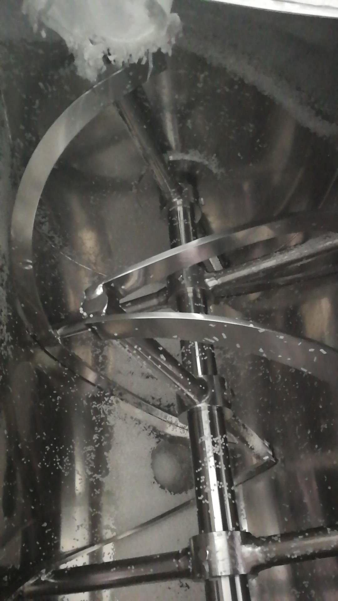 臥式筒體內裝有雙軸旋轉反向的漿葉,漿葉成一定角度將物料沿軸向、徑向循環翻攪,使物料迅速混合均勻臥式混合機性能特點減速機帶動軸的旋轉速度與槳葉的結構會使物料重力減弱,隨著重力的缺乏,各物料存在顆粒大小、比重懸殊的差異在混合過程中被忽略。臥式攪拌桶內有內外兩層螺帶,在減速機的作用下,強勁有力地帶動主軸的旋轉,螺帶呈一定角度將物料沿軸向、徑向循環翻動攪拌,在交錯安置的螺帶快速劇烈的翻騰拋灑下,使物料快速攪拌混合均勻,能達到很好的混合效果。螺帶與桶壁的間隙可調至接近零位,有效地減少了物料殘留量,適合兩種以上物料的混合,出料口在設備下部,出料順暢,殘留量少。